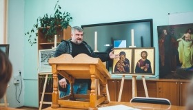 Художник цікаво та пізнавально розповів про історію іконопису, його символізм та мистецькі техніки виконання, поділився досвідом з розпису православних храмів.
