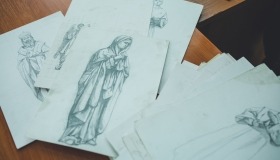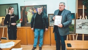 Студенти та педагоги також мали можливість ознайомитись з робочими ескізами митця, задати свої запитання.