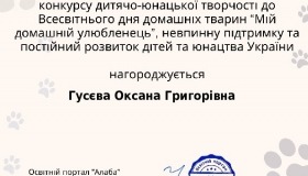 1 місце у Всеукраїнському конкурсі дитячо-юнацької творчості до Всесвітнього дня захисту тварин "Мій домашній улюбленець" здобула Анна Козлюк, другокурсниця спеціальності "Образотворче мистецтво, декоративне мистецтво, реставрація", зі своїм "Зеленооким Щастям" - малюнком, виконаним в техніці кольорової графіки.