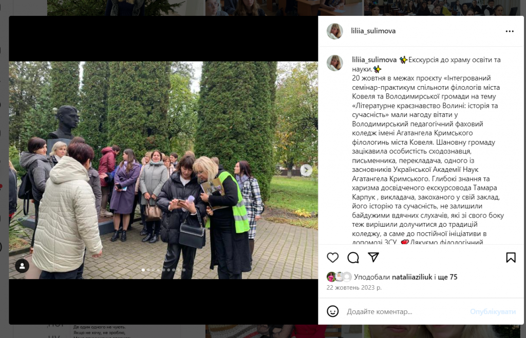 Інтегрований семінар-практикум спільноти філологів міста Ковеля та Володимирської громади на тему «Літературне краєзнавство Волині: історія та сучасність» вітали у нашому закладі.