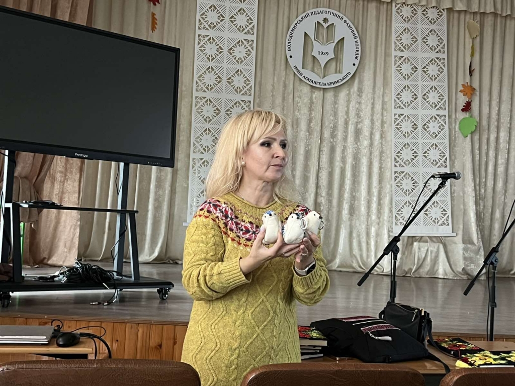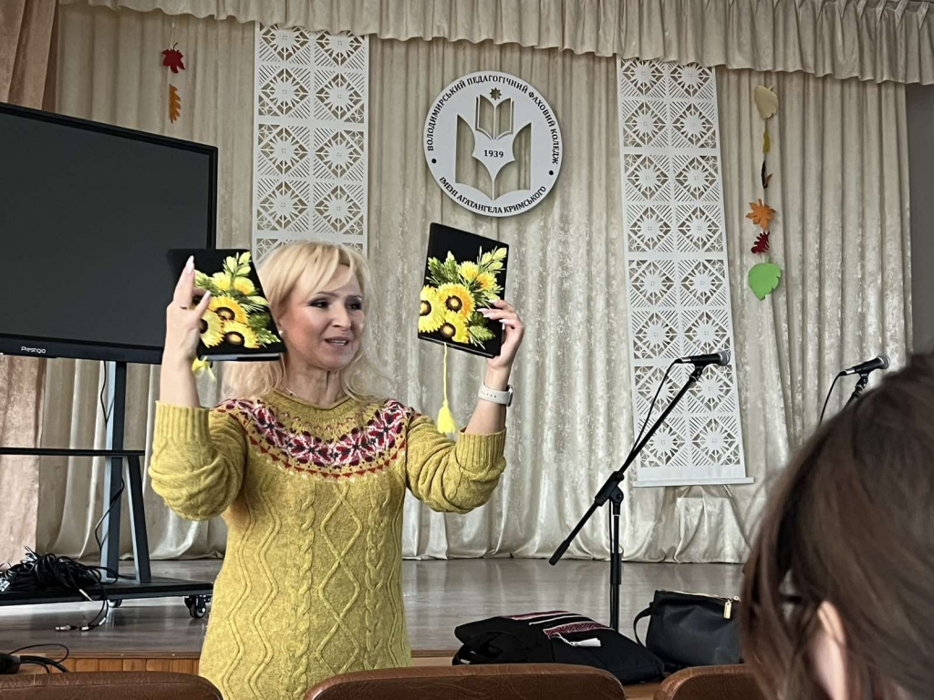 Ірина Василівна плавно надала зустрічі теплий, задушевний тон, як досвідчений вчитель-практик розповідала про свою роботу вчителя, своє хоббі, яке дозволило їй стати мисткинею-вишивальницею, а далі уміло спрямовала розмову у цікаве русло й поділилася секретами, як стати щасливою людиною!На життєвому і творчому шляху вчителя і мисткині траплялося всіляке, але вона вважає, що кожен з нас повинен бути вдячним життєвим урокам, які загартовують нас. Вдячні тим, хто надає нам підтримку та вселяє надію. Окремо з її уст прозвучали слова вдячності для викладачів коледжу, і загалом освітніх традицій нашого коледжу, в стінах якого відбуваються особистості, навчання в якому часто стає дороговказом у житті окремого індивіда. Студенти дізналися цікаві факти, що Ірина Василівна сама випускниця коледжу спеціальності «Образотворче мистецтво», а також її старша донька Христина отримала диплом з відзнакою тієї ж спеціальності у 2016 році.