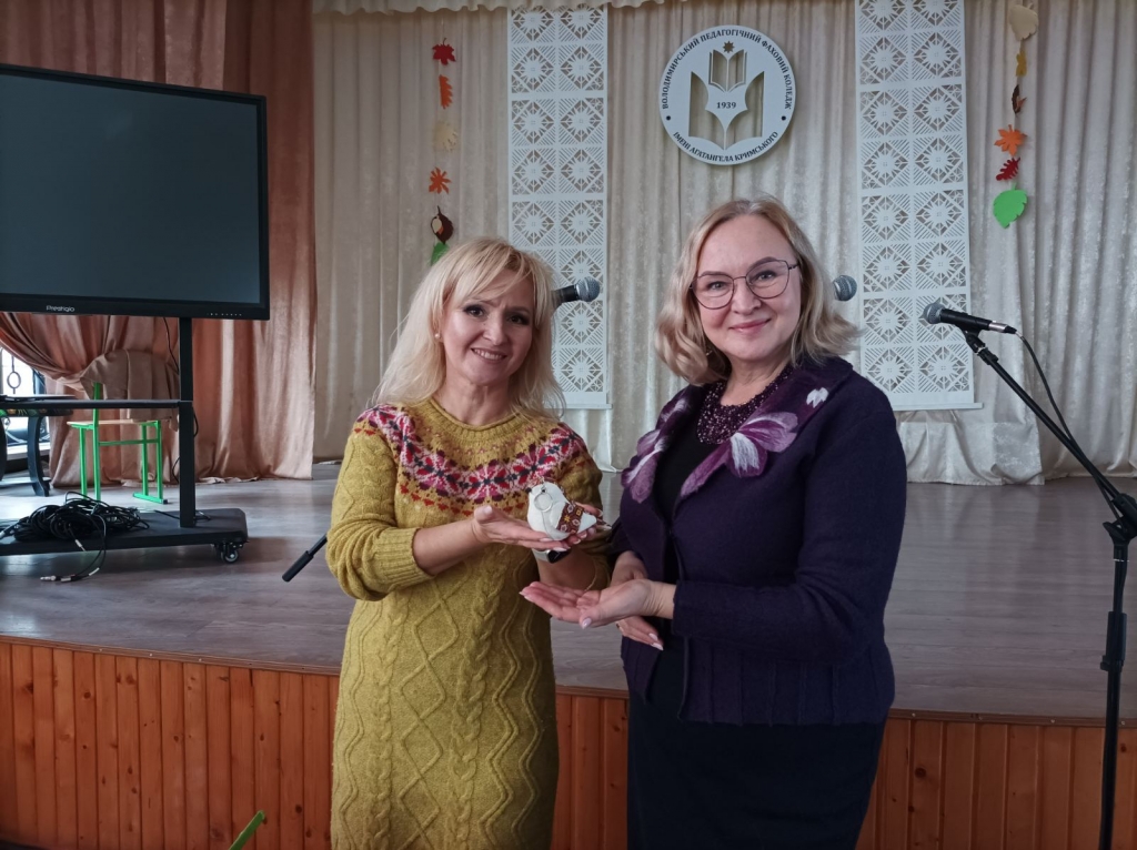 Наостанок Ірина Василівна побажала присутнім, щоб доля була прихильною до них, дарувала кожному можливість жити серед однодумців, серед тих, хто розуміє тебе, розділяє твої погляди та уподобання. А головне порадила творчим особистостям не закопувати свій талант даний Богом, розвиватися і ділитися з усіма, тобто працювати на благо всіх людей. Стати педагогом це покликання і найкраща місія на землі. Пригадаймо слова філософа: