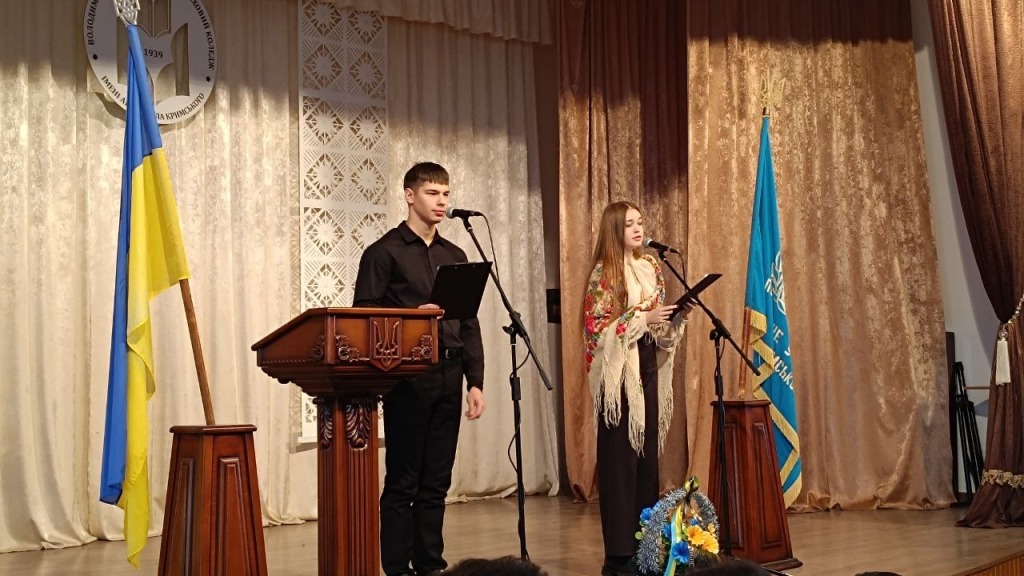 У своєму виступі заступник директора з навчальної роботи Олександр Юринець наголосив, що запровадження цієї пам'ятної дати є утвердження в Україні ідеалів свободи і демократії, вшанування патріотизму і мужності громадян, які стали на захист прав і свобод людини та національних інтересів держави.