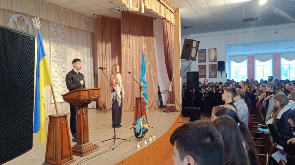 Сьогодні, 21 листопада, викладачі та здобувачі освіти коледжу зібралися на лінійці- реквіємі, щоб у скорботі низько схилити голови перед пам'яттю тих, хто боровся за честь, правду, гідність і віддав своє життя за свободу нашої Батьківщини.