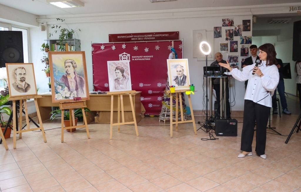 На факультеті філології та журналістики відбулася виставка Тетяни Токаревої «Відомі та улюблені». На полотнах художниці – знані в Україні та світі волиняни. Захід відбувся 20 листопада 2024 р. в межах освітньо-мистецького проєкту «Історію творять хоробрі серця», організованого кафедрою історії та культури української мови.