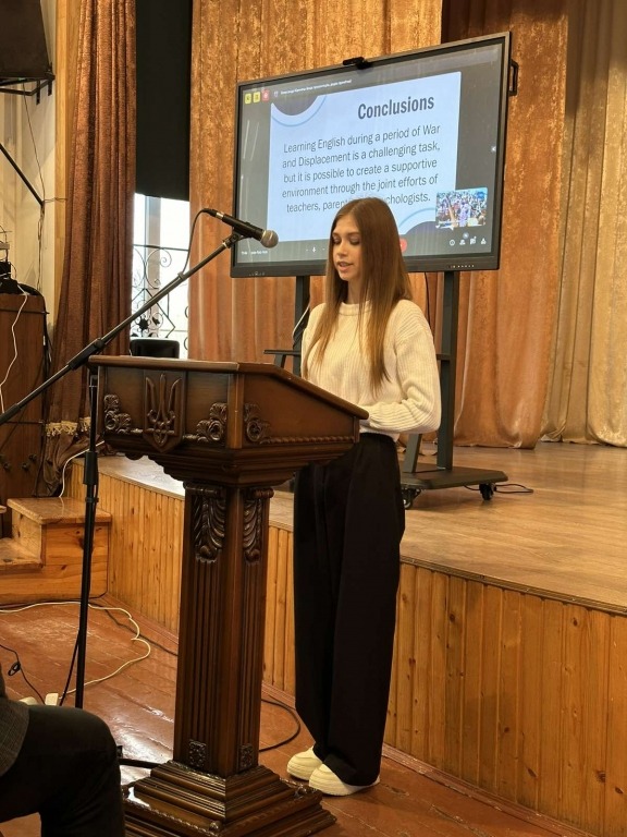 Свої доповіді представили: викладач англійської мови Орися Юринець «Використання Genially на уроках англійської мови»; студентка 3 курсу Каріна Дячишин «Motivating students to learn English in times of war and displacement”, керівник: Ольга Павлусь; студентка 1 курсу Ангеліна Іванникова “Англійська мова як міст до світової танцювальної спільноти: можливості та виклики української молоді», керівник: Аліна Левицька.