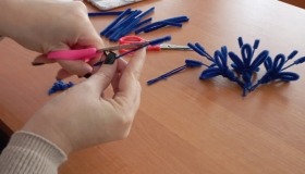 Олена Клюд показала майстер-клас з виготовлення флористичної композиції «Павутинної лілії». Присутні ознайомилися з технічними умовами виконання операцій, обрали матеріали та інструменти для роботи. Виготовивши сегменти квітки, створили гармонійну композицію.