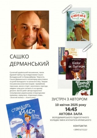 10 квітня в коледжі відбулася незабутня зустріч із відомим дитячим письменником Сашком Дерманським.