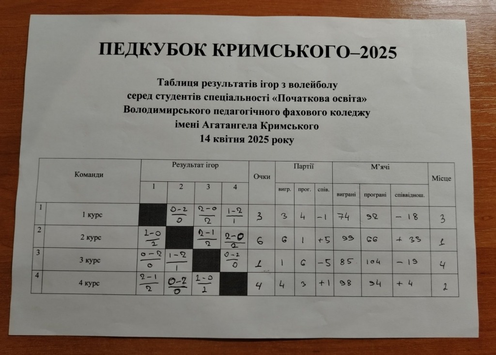 14 квітня у коледжі відбувся другий волейбольний турнір «ПЕДКУБОК КРИМСЬКОГО-2025» серед студентів спеціальності «Початкова освіта».