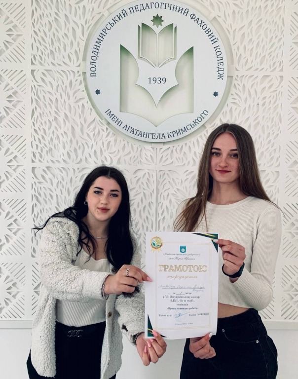 Циклова комісія діловодства та інформаційної діяльності пишається блискучою перемогою своїх студенток! Літвинчук Софія та Ткачук Богдана, під керівництвом викладачки Ольги Подворнюк, здобули перше місце у VII Всеукраїнському конкурсі «LIME. Go to read!» у номінації «Краща командна робота» за інноваційну відеороботу, спрямовану на популяризацію бібліотеки та читання серед молоді.
