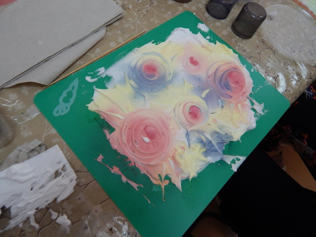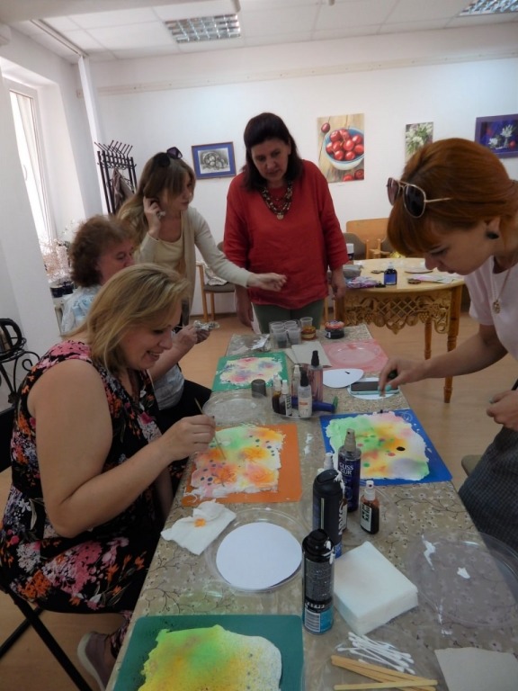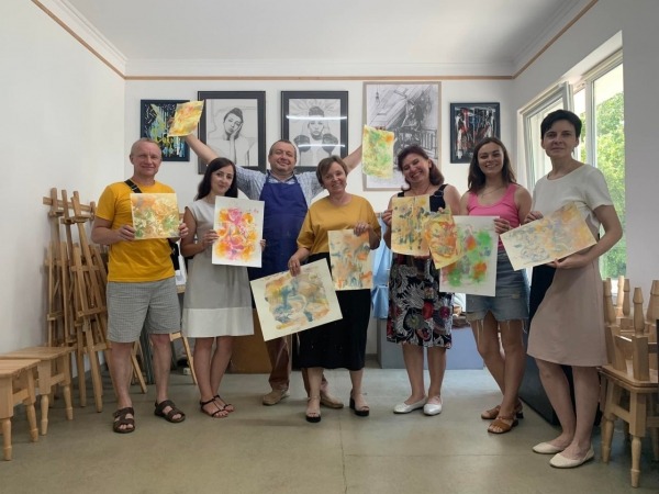 Кульмінацією творчо зустрічі стало освоєння унікальної техніки — монотипії на піні для гоління. Під час майстер-класу панувала неповторна творча атмосфера, наповнена захопленням та азартом. Вчителі, більшість з яких вперше спробували цей неординарний метод, сміливо фантазували, експериментували та створювали справжні неповторні малюнки. Активно обговорювалися можливості впровадження цієї техніки у шкільну практику, що відкриває нові, яскраві горизонти для уроків мистецтва.