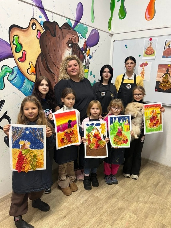Заняття гуртка у студії «Арт- Бульдожка» відбулося як подія- яскрава, тепла, душевна та пізнавальна для всіх учасників. Тема «Дівчина-Осінь» активізувала атмосферу творчості. Діти з натхненням малювали, клеїли, фантазували та творили. Було приємно бачити як вони проявляють свої таланти, а педагоги вкладають у підготовку серце і душу. У нас склався творчий тандем: з одного боку- харизматична Іргіна, з іншого студенти коледжу Вероніка та Анжеліка з керівником практики Лесею Мартинюк.