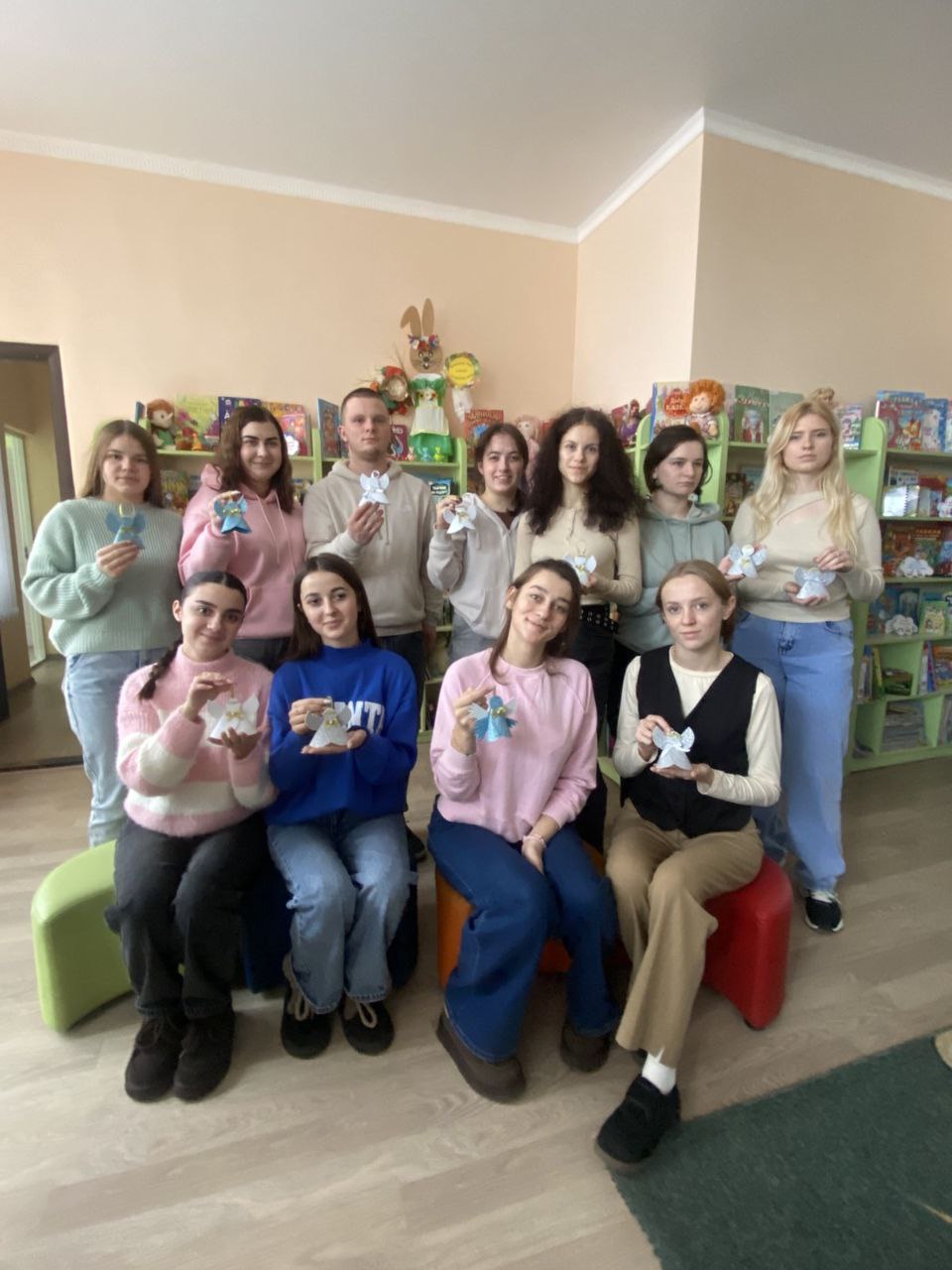 3 грудня студенти 4 курсу спеціальності «Початкова освіта» відвідали незвичне навчальне заняття з дисципліни Культура мовлення та дитяча література у дитячій бібліотеці нашого міста. Працівниці установи Тетяна Іванівна Островська та Марія Віталіївна Бардась познайомили майбутніх педагогів із бібліотечним фондом, розповіли про сучасних дитячих письменників і поділилися особливостями роботи з маленькими читачами. Під час творчої частини заняття студенти виготовили ангелочки для ЗСУ — обереги, наповнені вдячністю та підтримкою. Такі заняття надихають і допомагають поєднувати теорію з живим досвідом