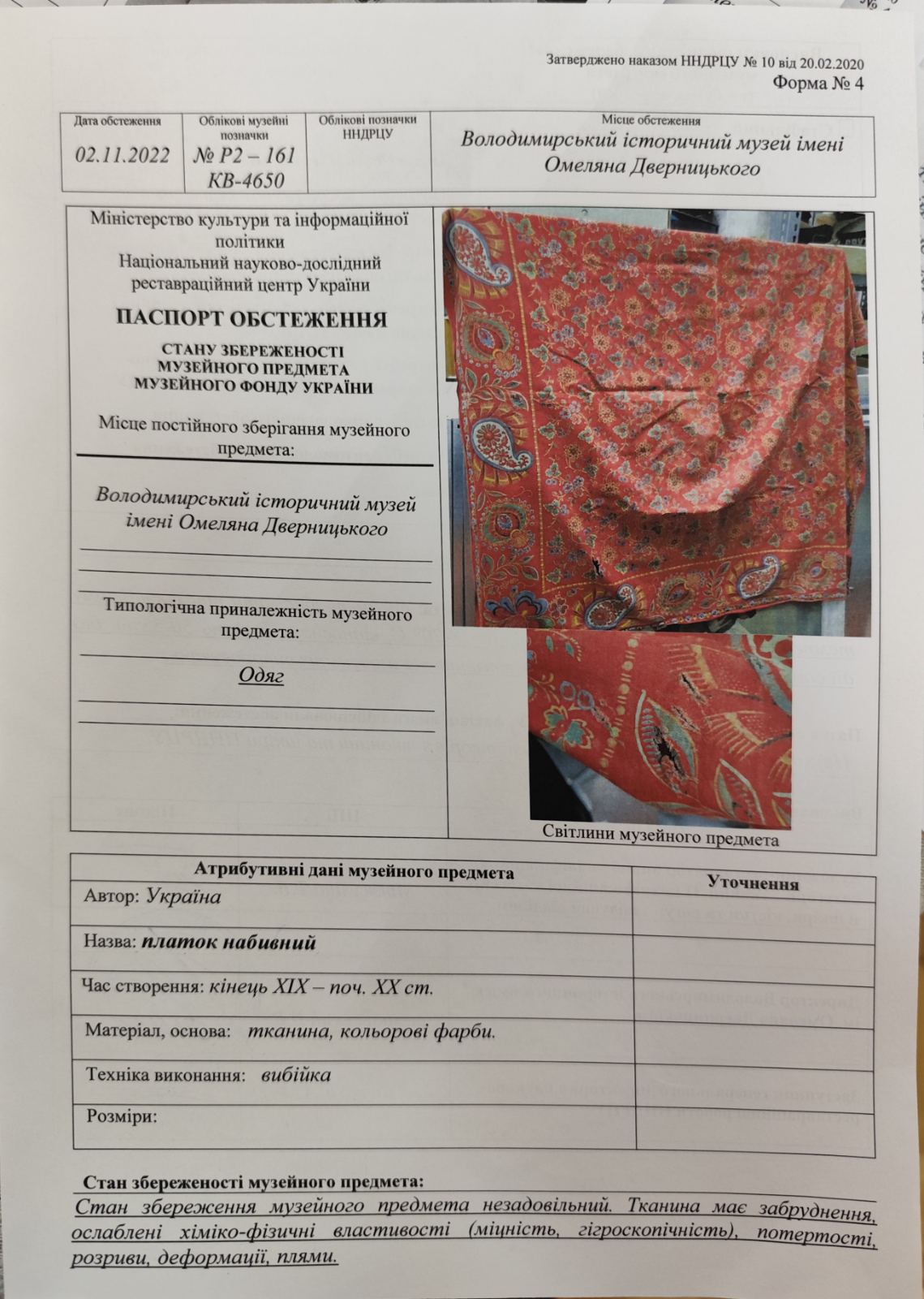 ЛЕКЦІЯ-ЕКСКУРСІЯ З РЕСТАВРАЦІЇ ТЕКСТИЛЮ У СПІВПРАЦІ З ВОЛОДИМИРСЬКИМ ІСТОРИЧНИМ МУЗЕЄМ ІМЕНІ ОМЕЛЯНА ДВЕРНИЦЬКОГО