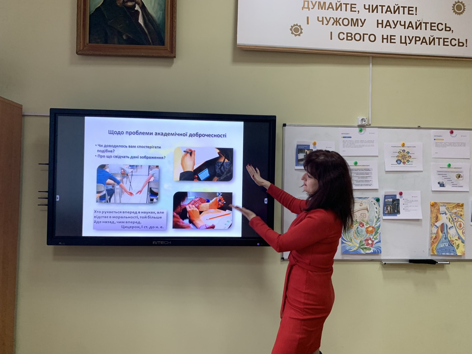 Викладачі Ірина БАРАНСЬКА, Наталія ЗІЛЮК, Ольга ПОДВОРНЮК, Тетяна ЛАХМАНЕЦЬ разом зі студентами приєдналися до проведення Всеукраїнського уроку доброчесності, на якому детально обговорили принципи академічної доброчесності, важливість самостійного виконання робіт, негативні наслідки плагіату та списування тощо.