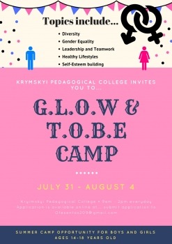 ВОЛОДИМИР-ВОЛИНСЬКИЙ ПЕДАГОГІЧНИЙ КОЛЕДЖ ЗАПРОШУЄ ХЛОПЦІВ ТА ДІВЧАТ ВІКОМ 14-18 РОКІВ У ЛІТНІЙ АНГЛОМОВНИЙ ТАБІР GLOW&TOBE (GLOW -Girls Leading Our World – Дівчата керують світом; TOBE - Teaching Our Boys To Excel – Навчимо наших хлопців бути кращими)